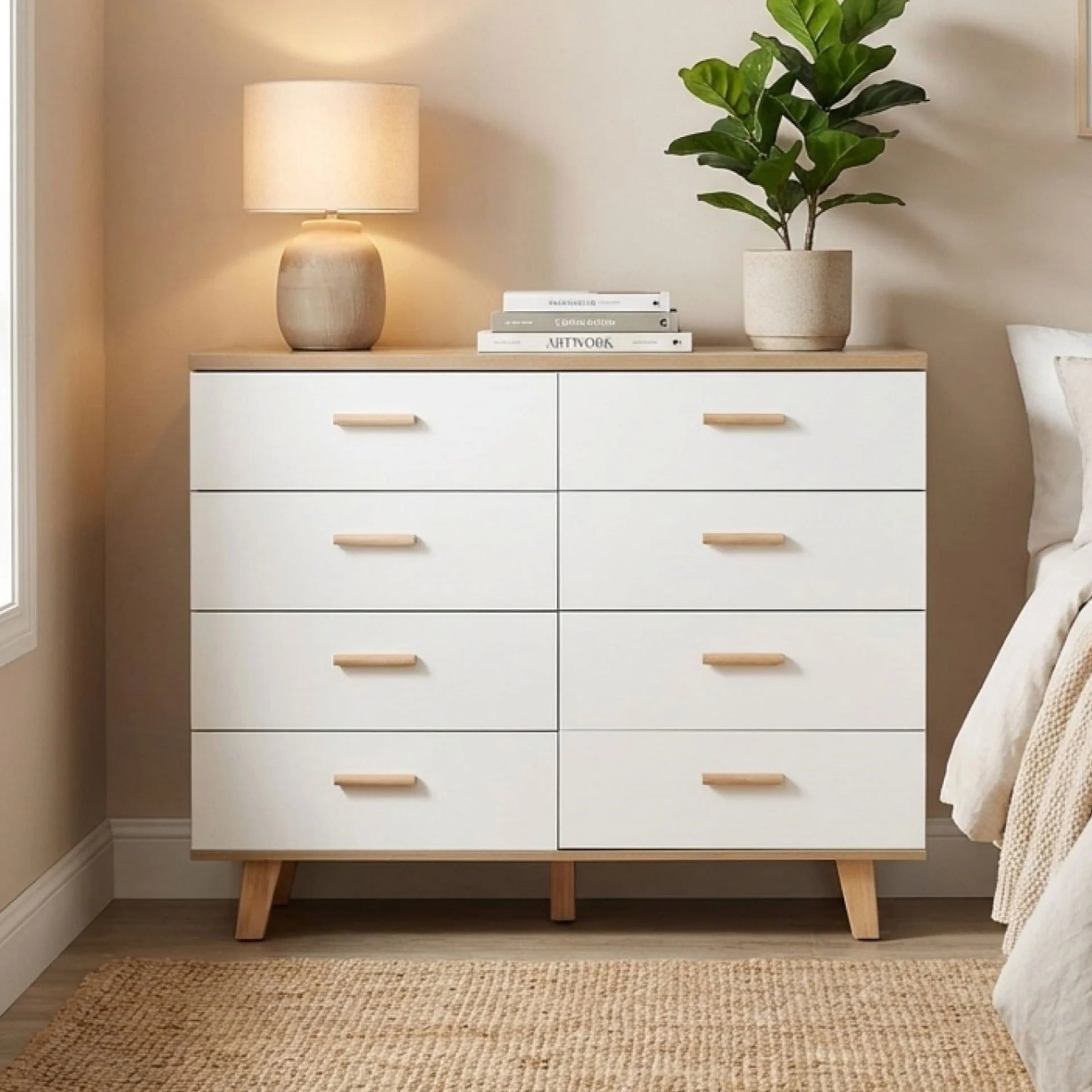 Alton Low Boy 8 Drawers - Natural + White