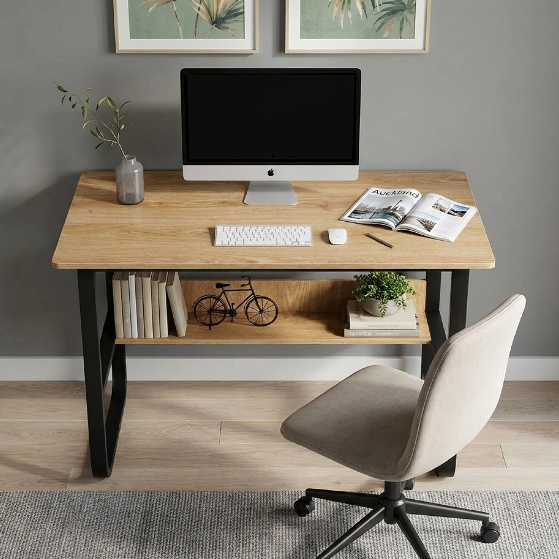 Spacious enough surface for laptops, monitors, and more. A generous open shelf under the desk provides storage space for books, files or accessories – keeping your work area tidy.