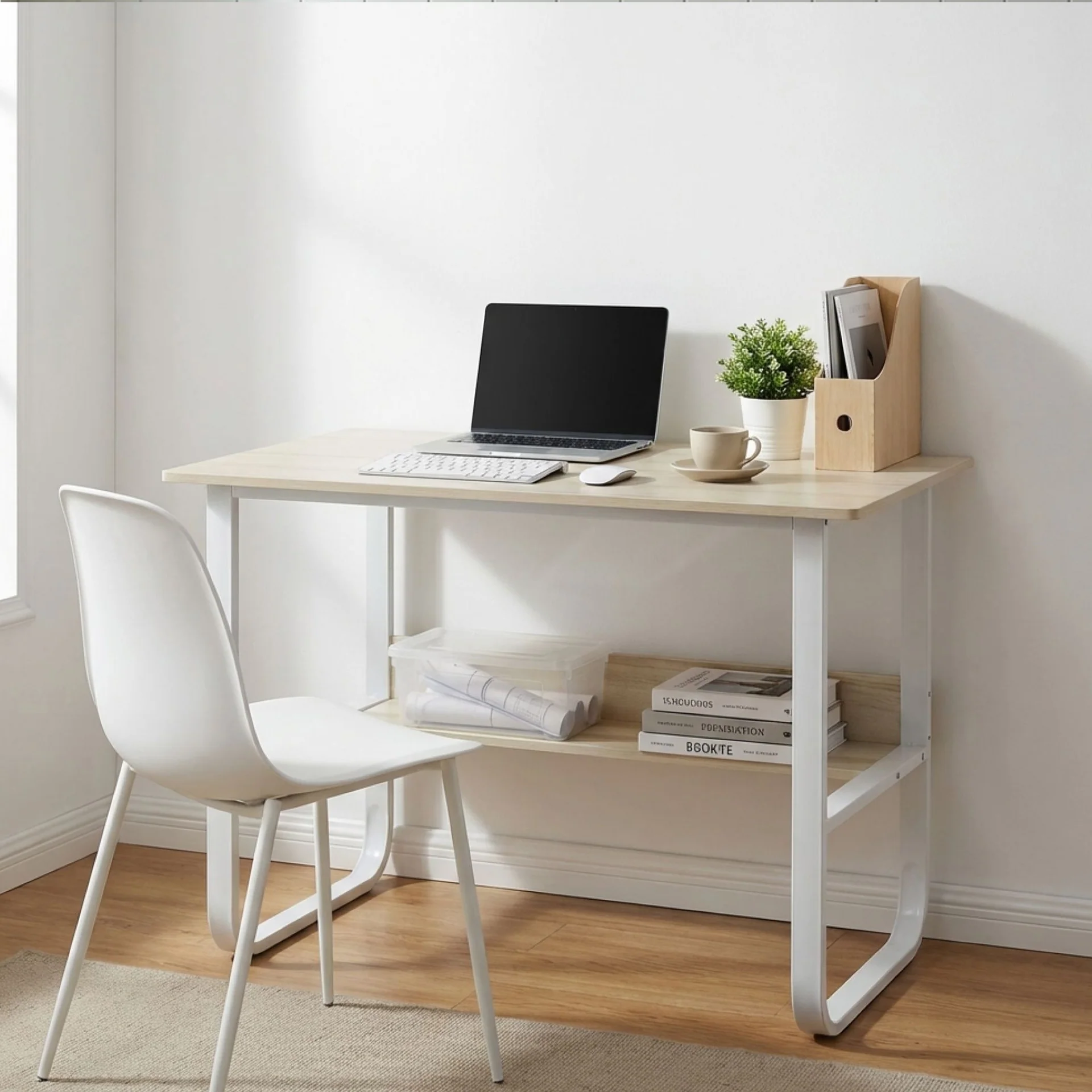 A desk as chic as it is practical the Andrea 100cm Computer Desk design makes a perfect addition to your home. The crisp white metal frame with a maple wood-look melamine surface brings a touch of minimalism in your home or office environment.