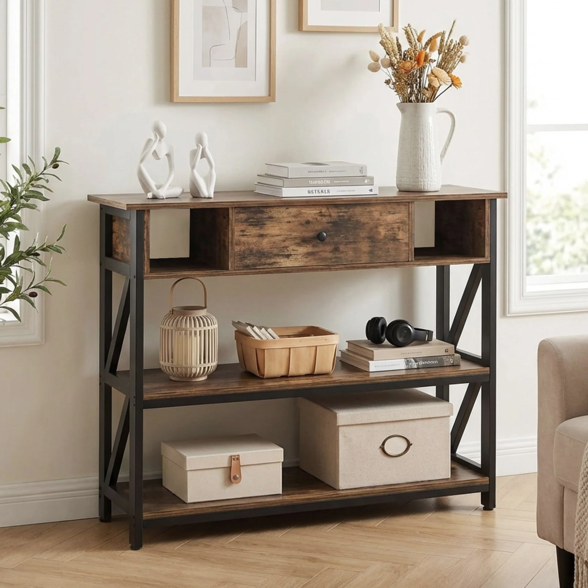 Enjoy the convenience of its three-tier spacious storage and practical drawer, enabling you to organize essentials neatly and efficiently. The straightforward assembly process ensures setting up your new Console Table is quick and hassle-free, allowing you to enjoy its benefits without delay.