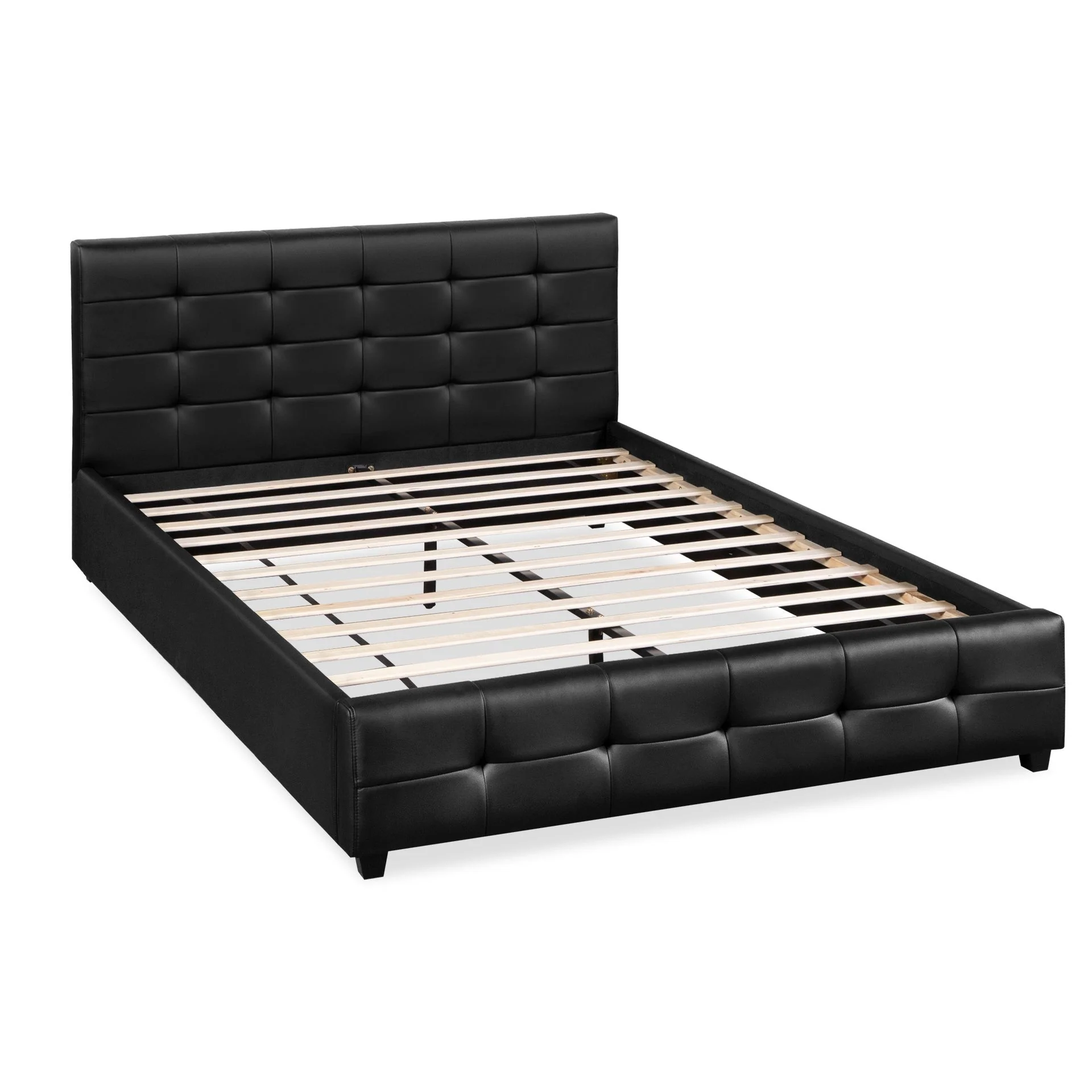 Augusta PU Slat Bed Frame - Queen - Black