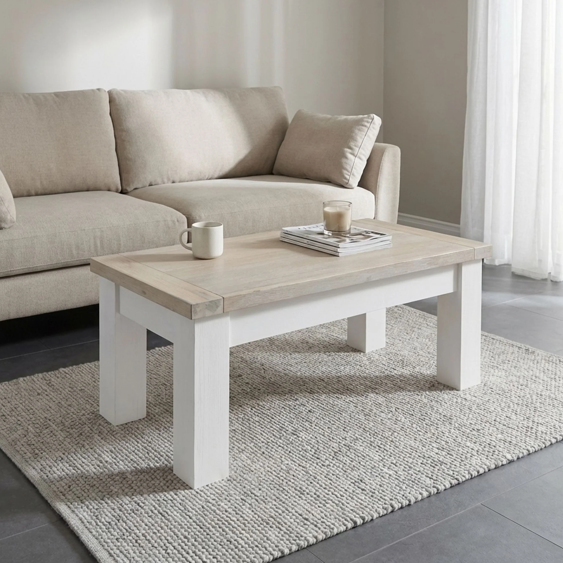 Make the Aurora Coffee Table the perfect addition to your living space. Made from sturdy solid pine, this Coffee Table is easy to assemble and built to last. With its modern American style and timeless elegance, it is sure to bring a touch of sophistication to your home.