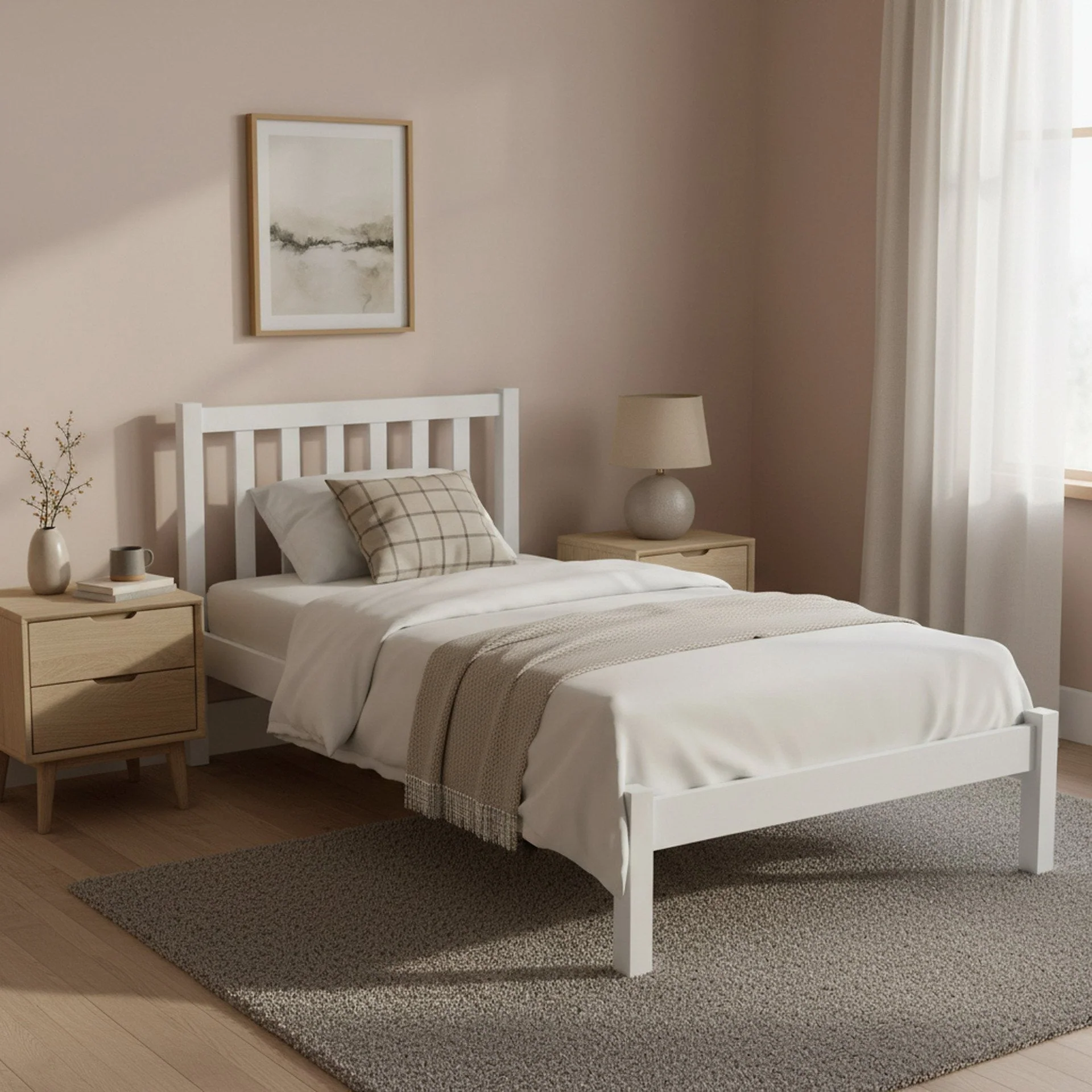 Baker Single Wooden Bed Frame - White