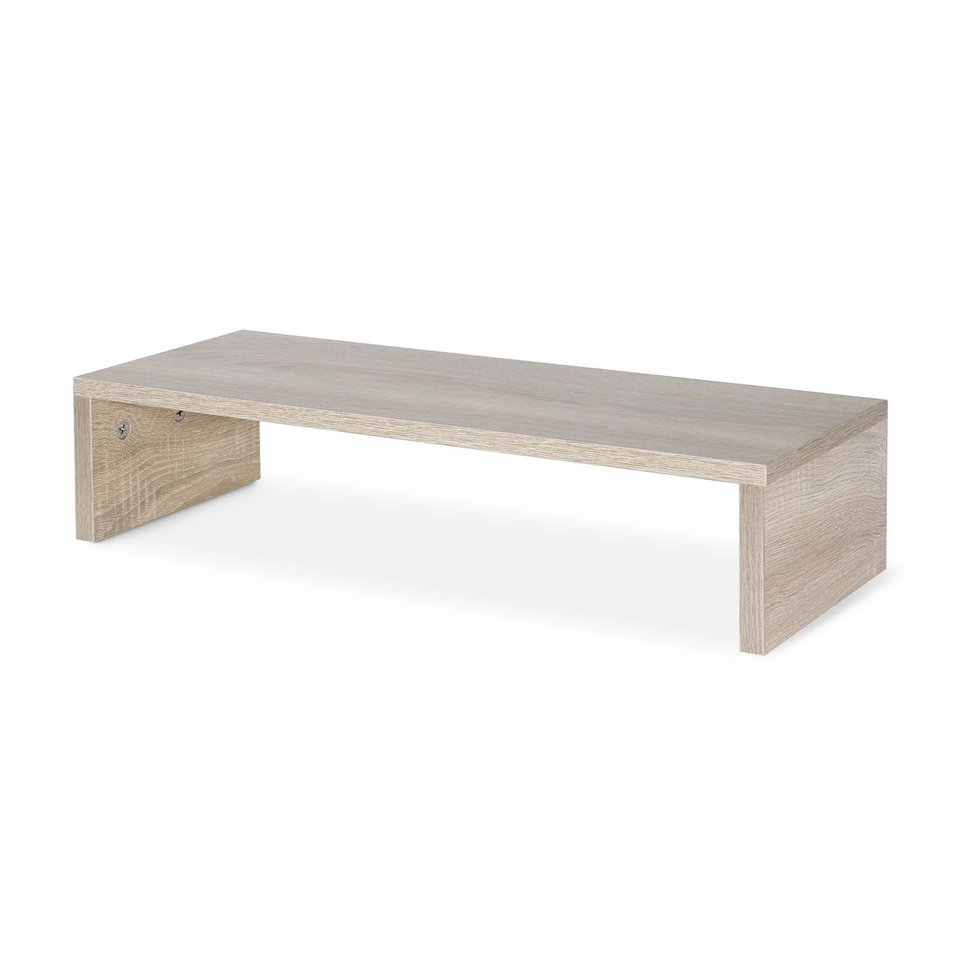 This practical monitor stand with a minimalist design will add a modern touch to your living space. This computer stand can be used as a TV stand or riser for your desktop monitor, or other multimedia devices. Raising your screen will reduce the strain on your neck or back. The space underneath can accommodate your keyboard, DVD player, gaming console, streaming device, receivers, media carriers, etc. Made of chipboard, this screen riser is sturdy and durable yet stylish. All surfaces are easy to clean. Assembly is easy.