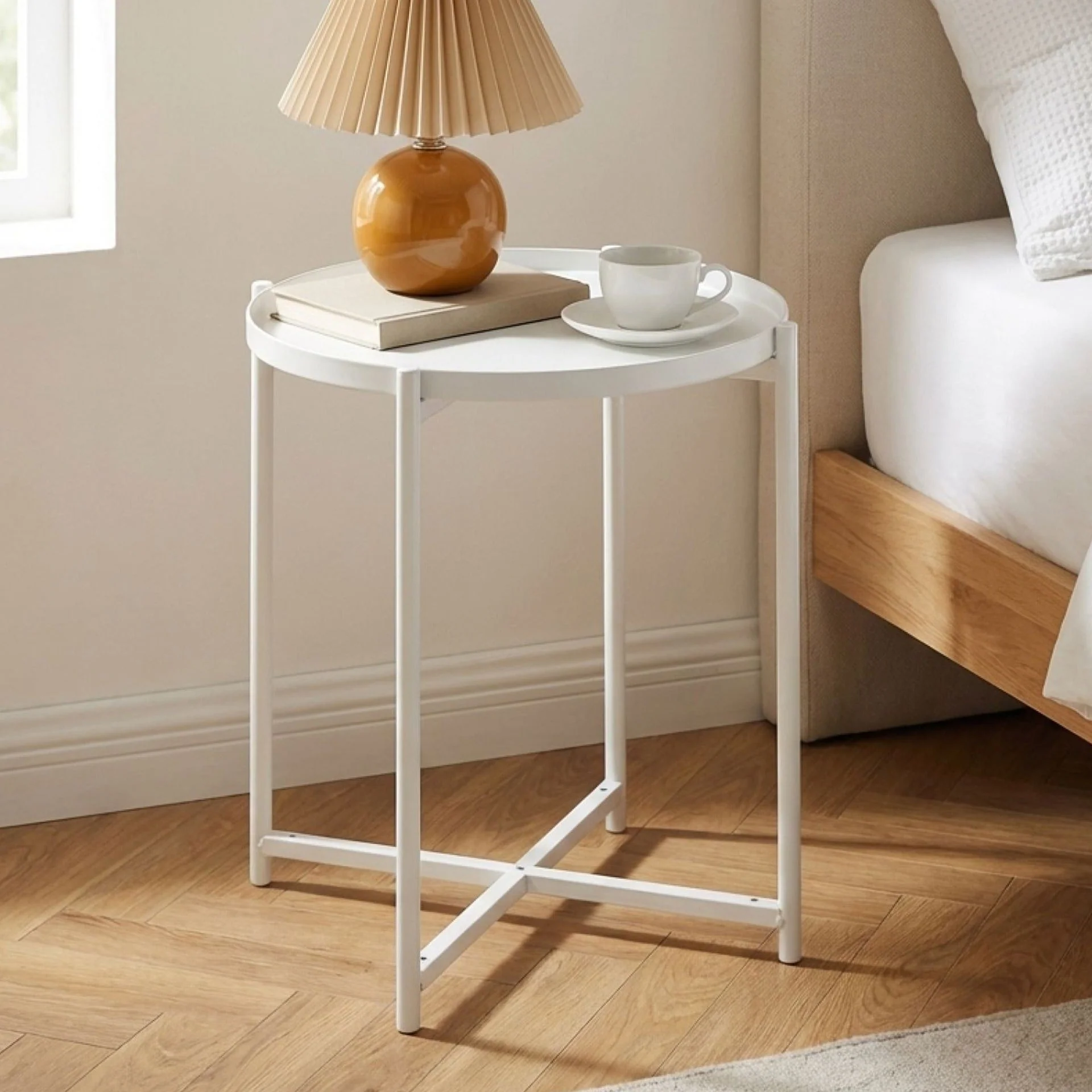 This chic tray top side table features child-friendly curved edges and a recessed interior to prevent items from sliding off the surface. Its sturdy steel construction and a wear-resistant powder coating ensure durability and good looks for years to come. The compact size makes it ideal for most spaces while the versatile design allows for multiple uses.