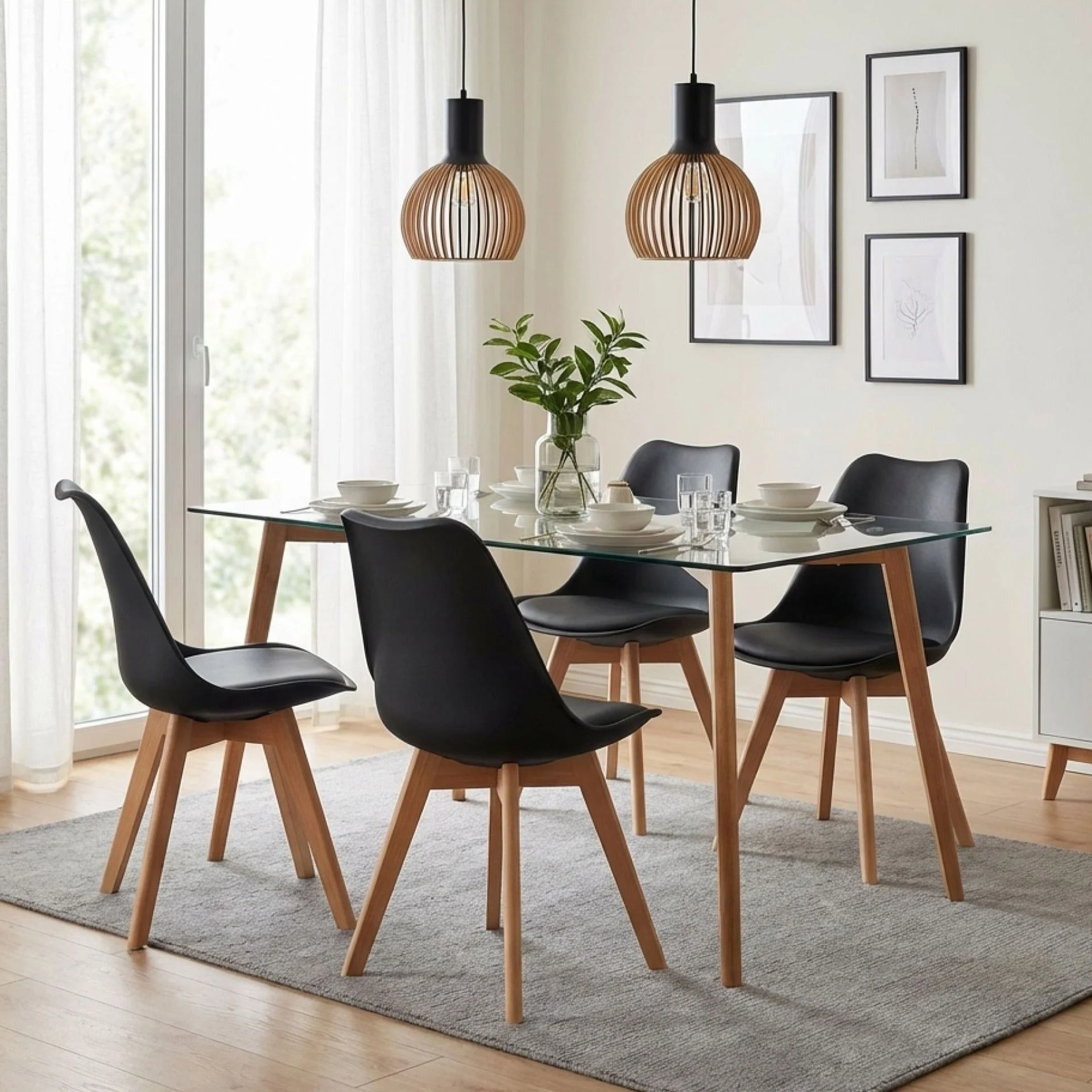 Add practical comfort and clean modern style to your dining space with the Evelyn Dining Chair Padded Set. Designed with a supportive backrest and cushioned seat, these chairs are ideal for everyday meals and casual entertaining. The black seat pairs easily with a wide range of tables, while the oak wood legs add a warm, natural touch.