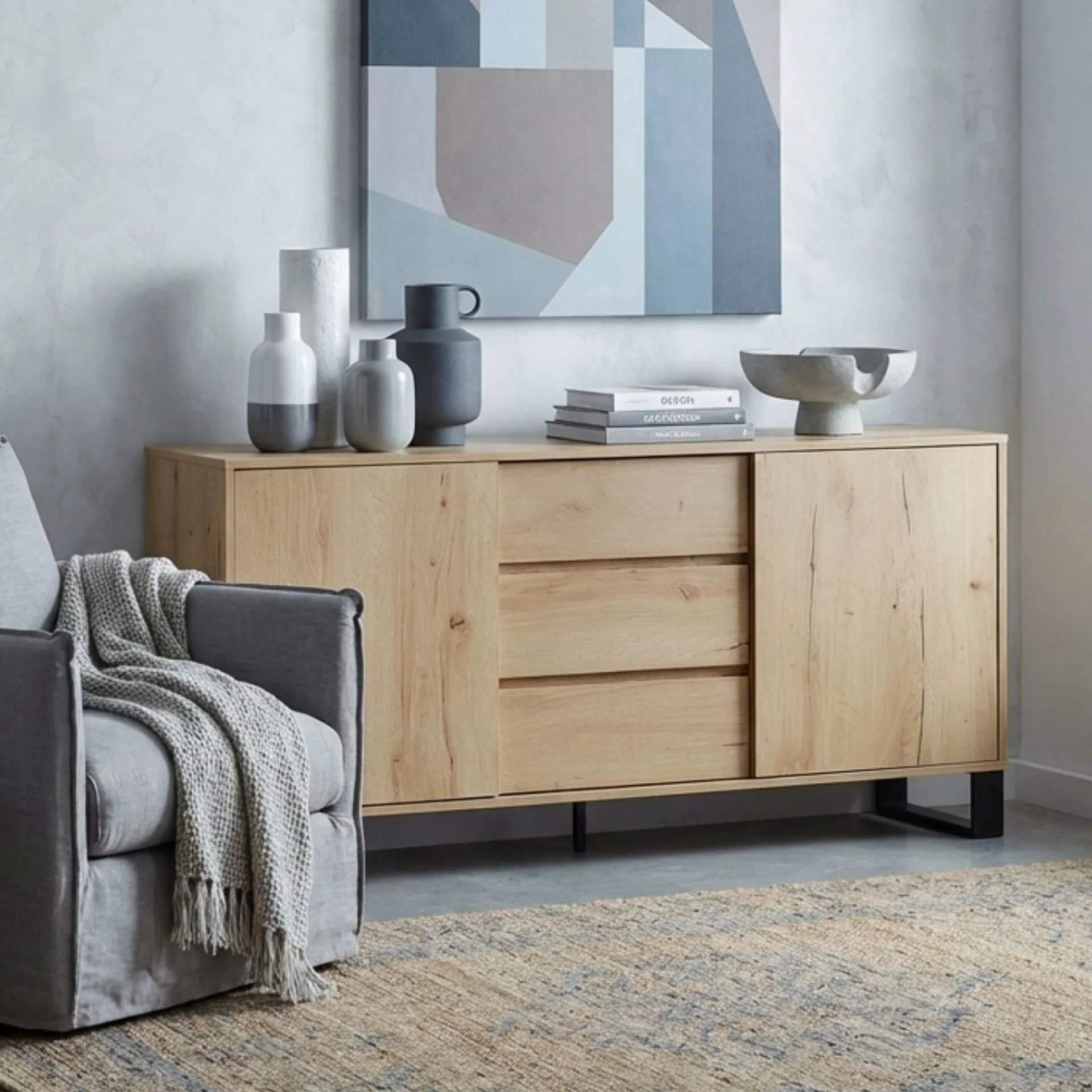 Frohna Sideboard Buffet Table with 3 Drawers - Oak