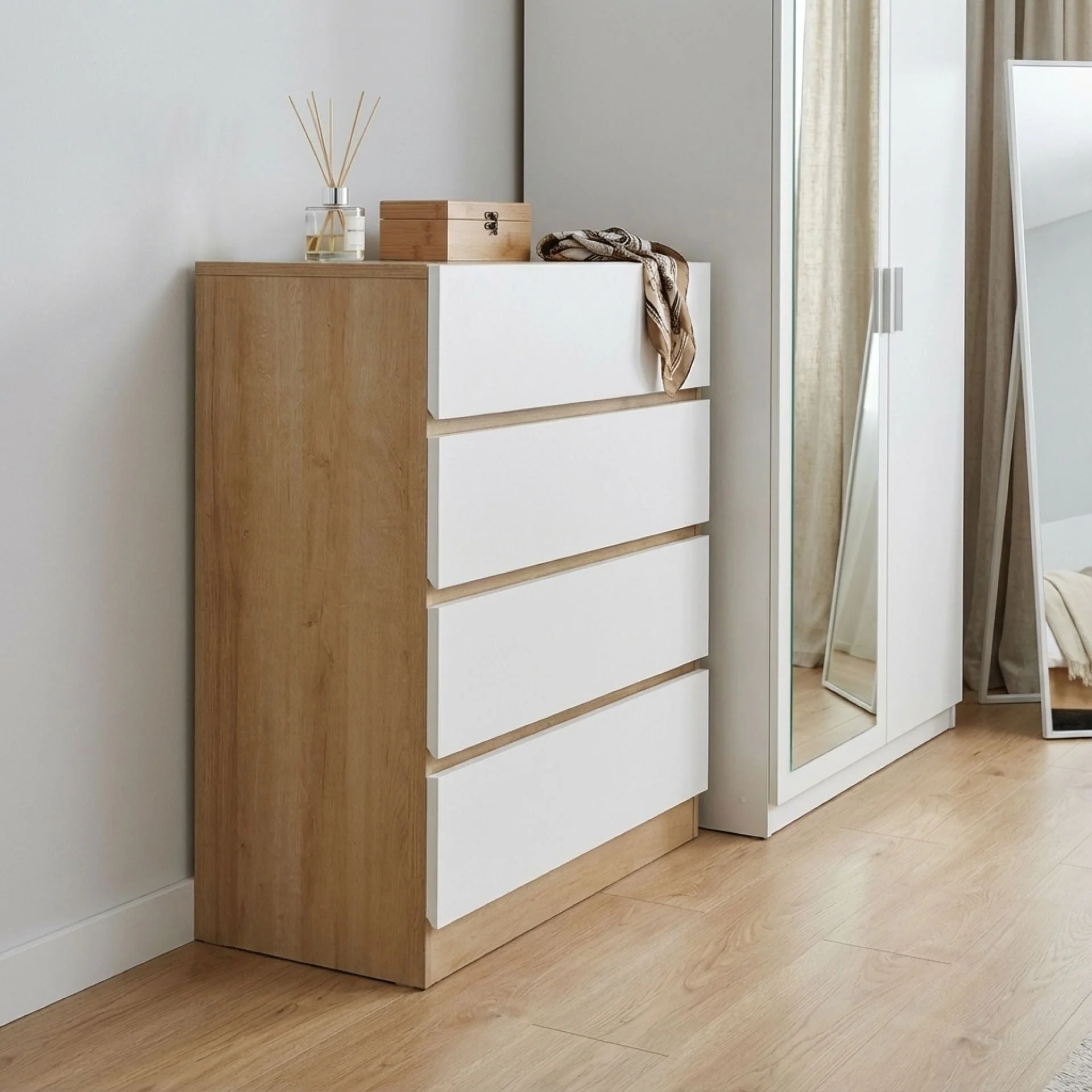 Harris 4 Drawers Tallboy - Oak + White