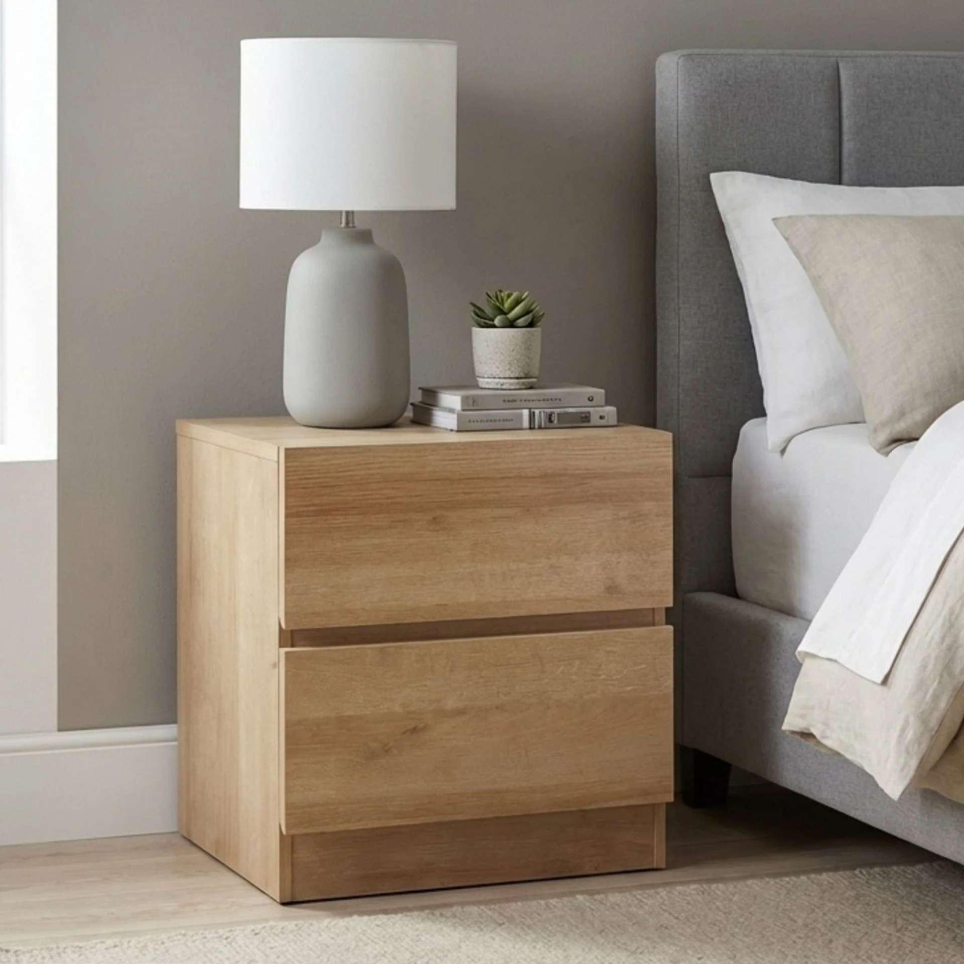 This Harris Bedside Table is one of our Harris range products with a modern look which will be a perfect addition to your bedroom and suits any modern or simple decor perfectly. Crafted from high quality MDF, this Harris Bedside Table features a sturdy construction that can last for years; come with the 2 drawers to stow away your phones, books, photo frames etc. and keep everything hidden; while the flat top provides a spot for your table lamp and alarm clocks and other accessories; while the neutral design will blend easily with your home decor.