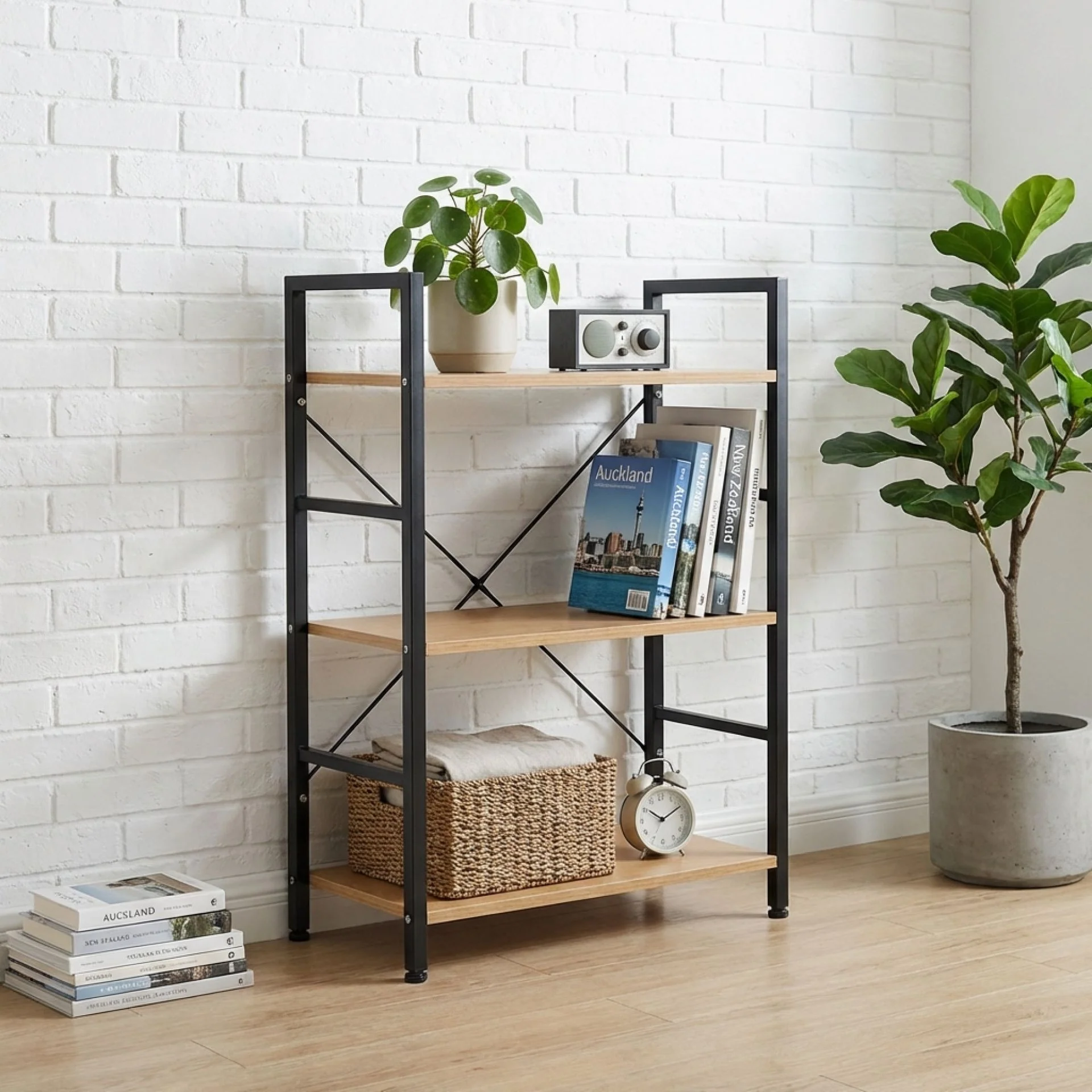 Hikuai 3 Tier Bookshelf - Natural + Black