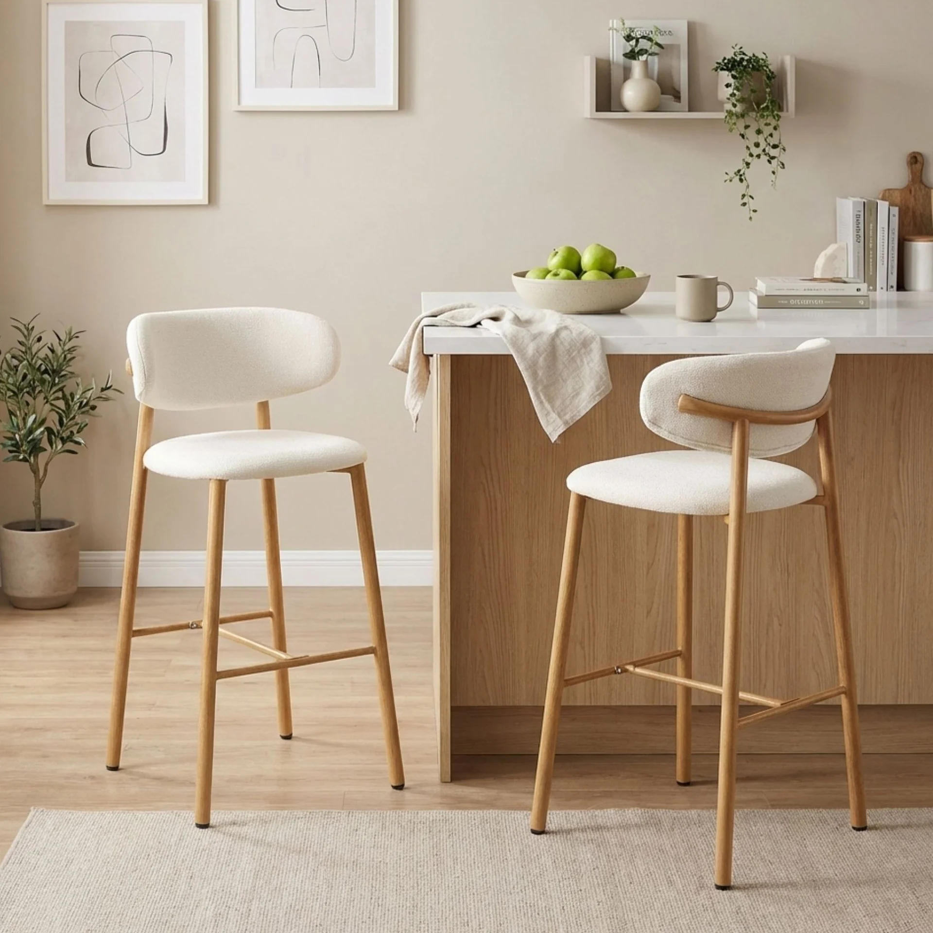 With a fabric seat offering both comfort and elegance, the Indigo Bar Stool is a stylish addition to any space. Its steel legs with wood grain finish, provide a durable yet lightweight structure. Ideal for modern homes, it combines functionality with understated charm.