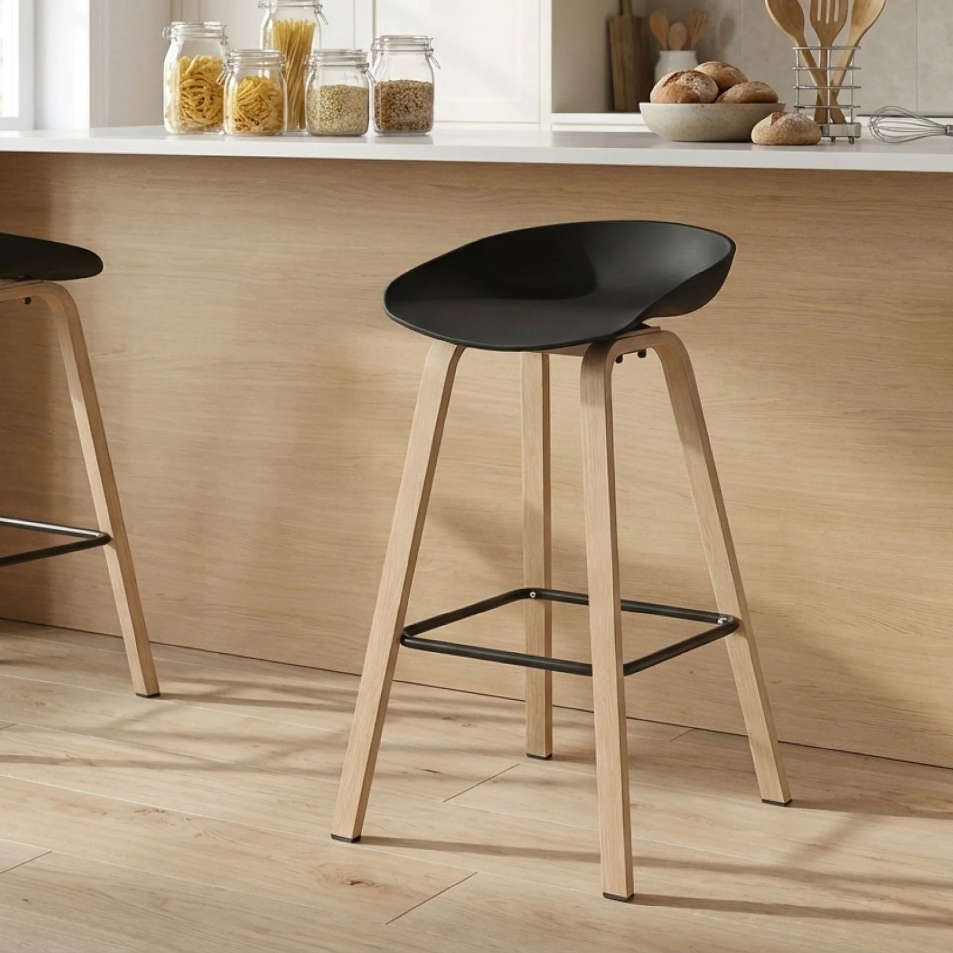 This upgraded Kai Pro bar stool set offers enhanced strength and stability for everyday seating at kitchen counters and bar areas. Built with a one-piece metal frame, it provides a more solid and durable structure while maintaining a clean, minimalist look. The integrated footrest adds everyday comfort, and the streamlined design allows the stools to slide neatly under counters, making them suitable for modern homes and light commercial spaces.