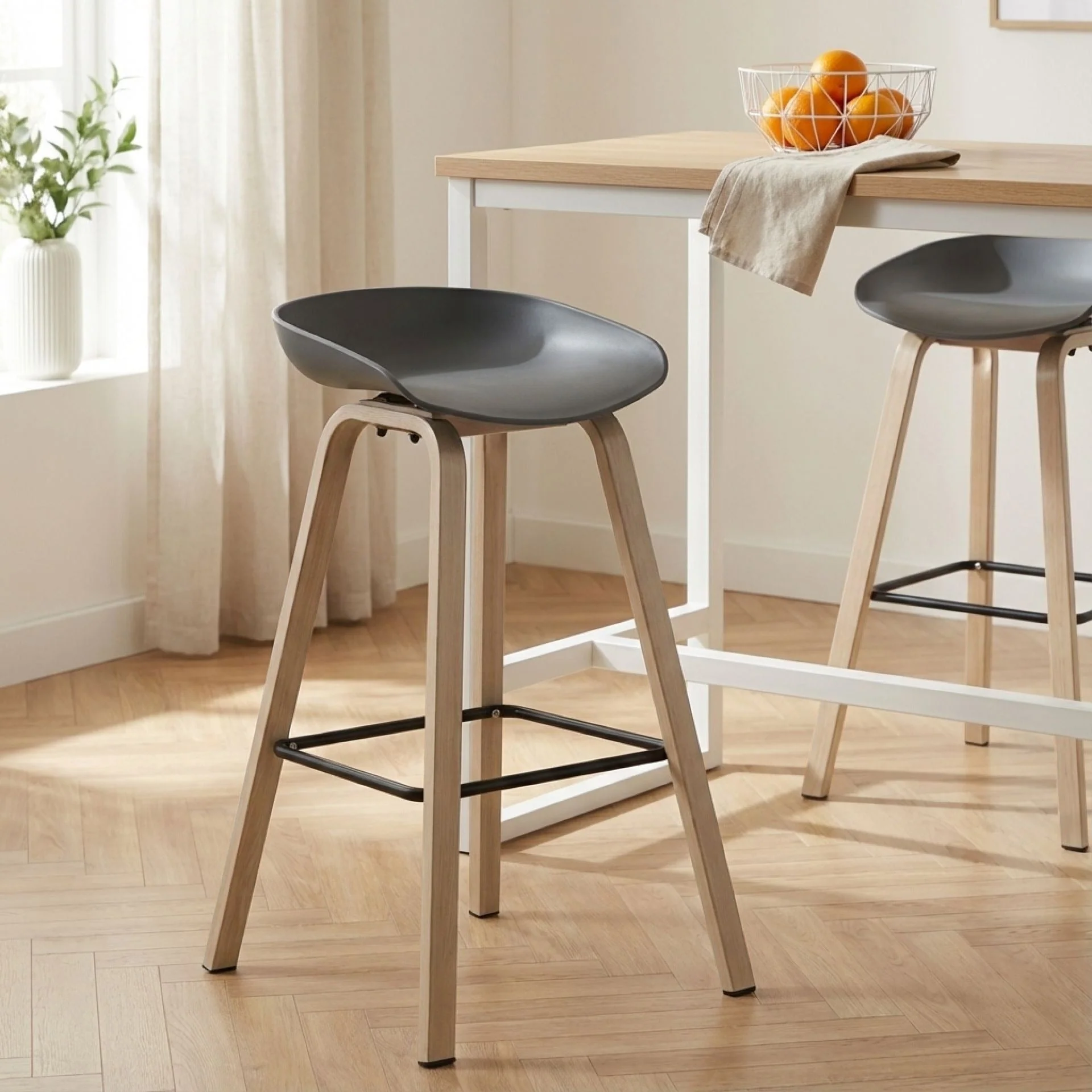 This upgraded Kai Pro bar stool set is designed to provide enhanced strength and stability for everyday seating at kitchen counters and dining areas. Built with a one-piece metal frame, it delivers a more solid and durable structure while maintaining a clean, minimalist appearance. The integrated footrest adds comfort, and the streamlined proportions allow the stools to slide neatly under counters, making them a practical choice for modern homes and light commercial spaces.