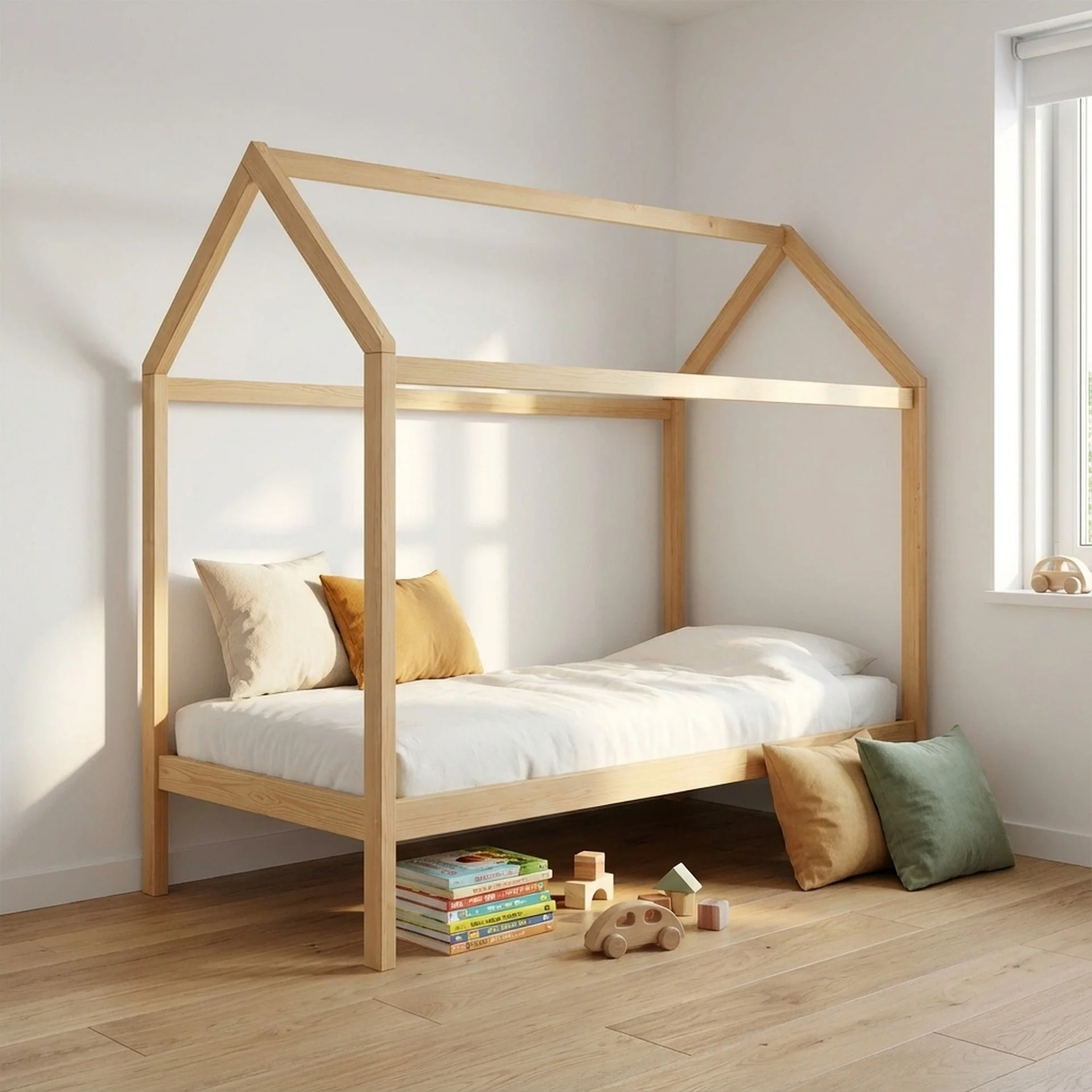 Mayon single wooden house Shape bed frame – OAK