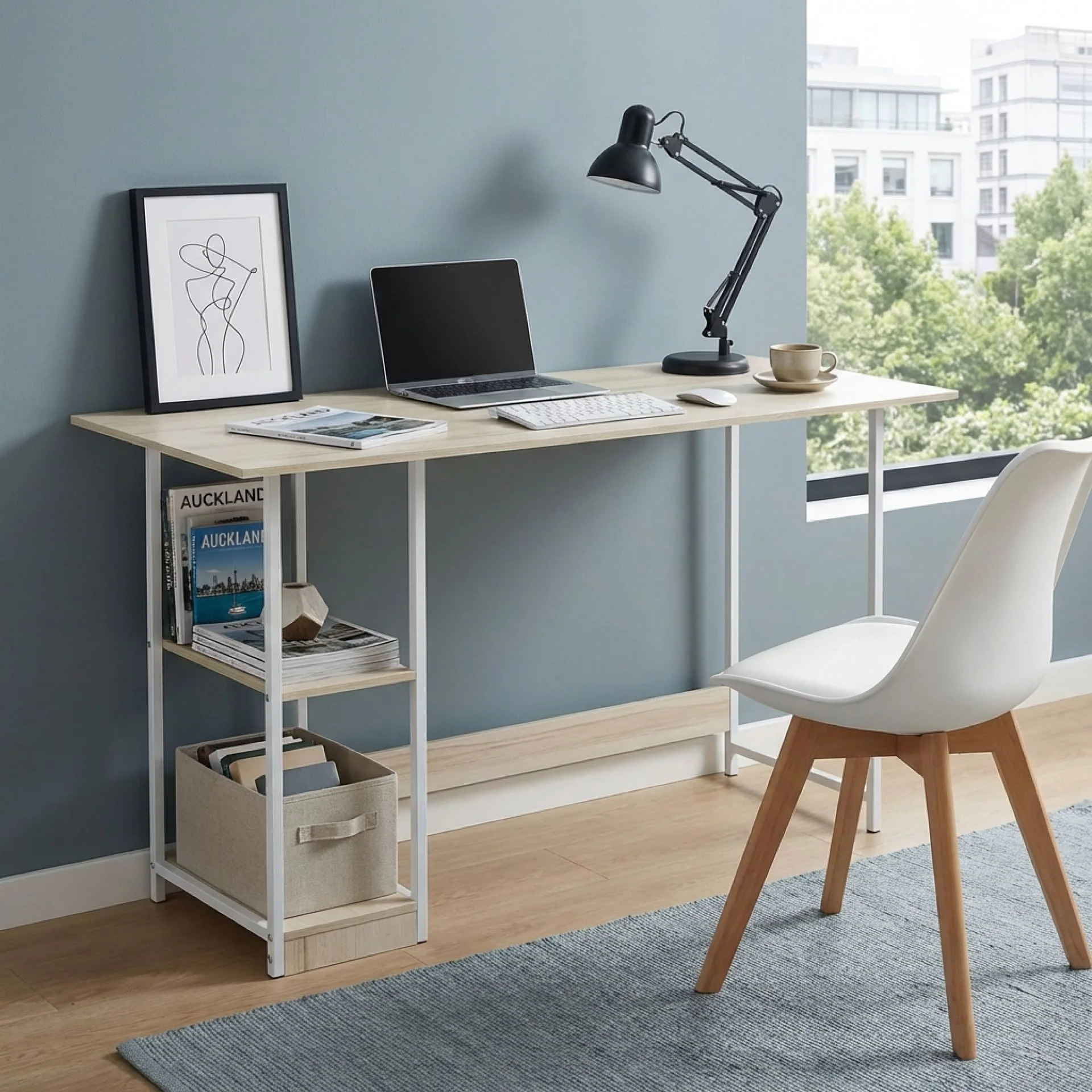 Monroe 120cm Computer Desk blend of style with intelligence, the desk can be best described as an ideal solution for any home office or studying space. The tidy white framework pairs with the warm maple wood-look melamine surface and delivers a crisp yet understated look that blends naturally into a variety of interiors.