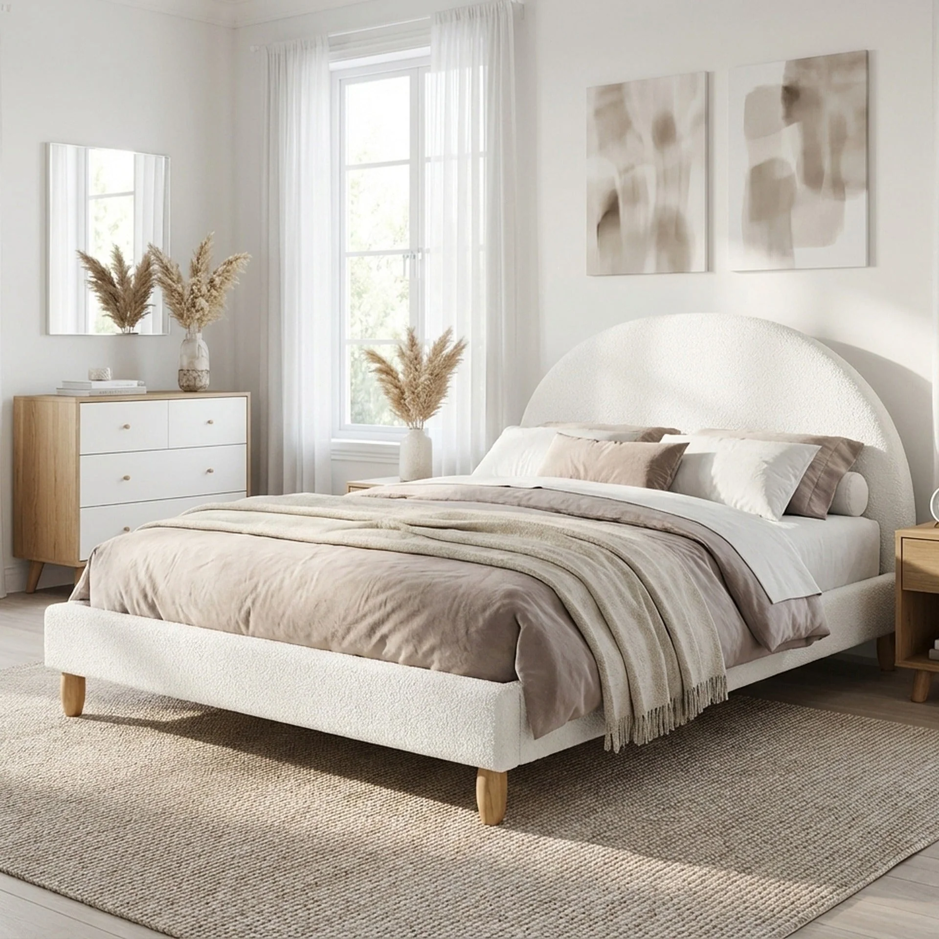 Moruisg Boucle Double Bed Frame - White