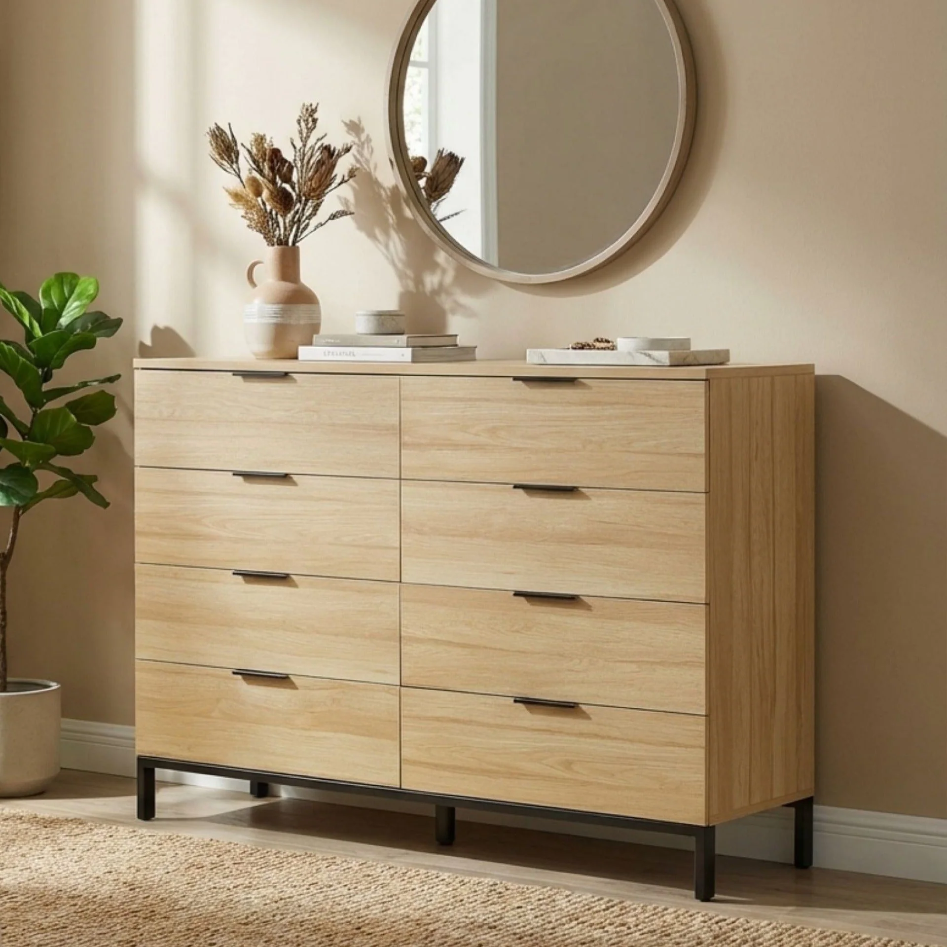 Ocala Low Boy 8 Drawer Chest Dresser - Oak