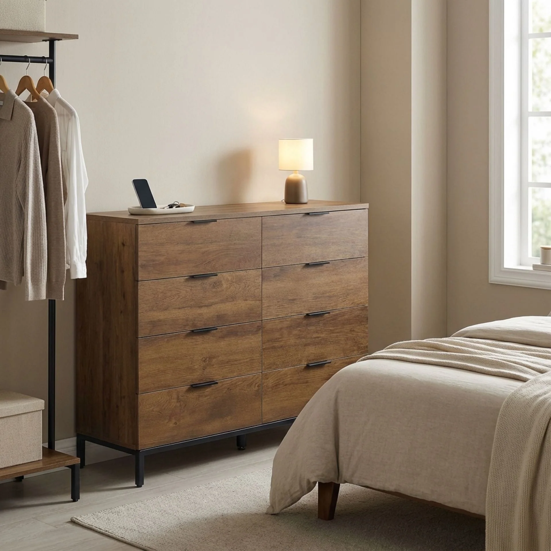 Ocala Low Boy 8 Drawer Chest Dresser - Walnut