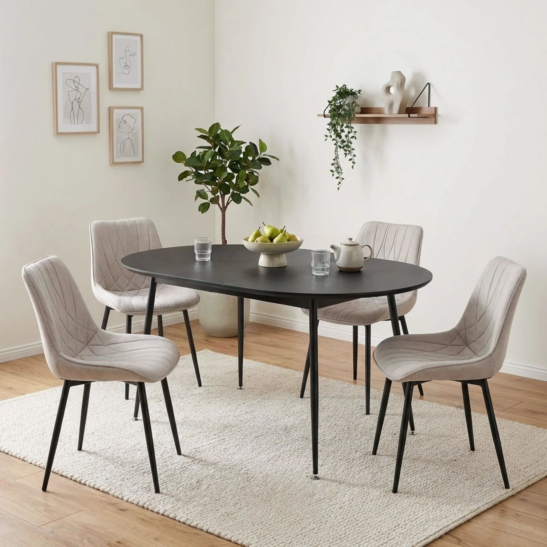 Showcasing a gracefully curved backrest, the Payton Dining Chair blends aesthetics with ergonomic support. Its durable black powder-coated legs ensure stability, while the fabric upholstery offers a soft and elegant finish. Perfect for dining spaces requiring contemporary charm and comfort.